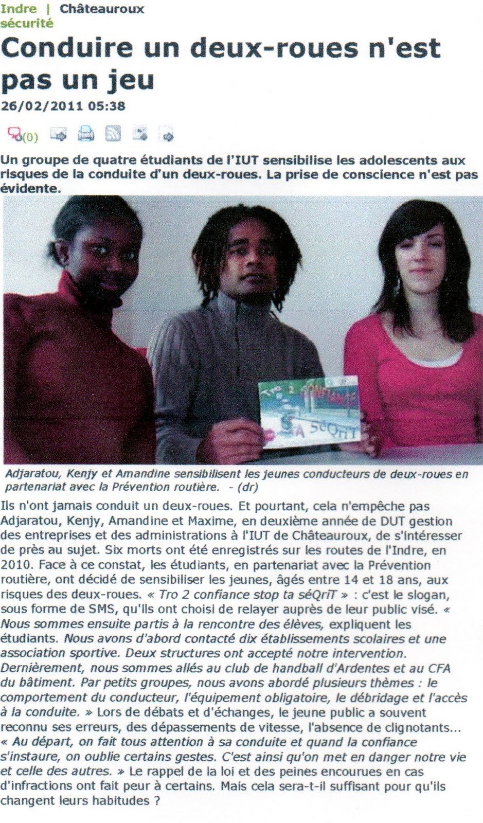 Cette année le CFA BTP de Châteauroux a participé à la 22e semaine de la presse. Du 21 au 26 mars 2011 les apprentis de deuxième année ont rencontré des professionnels de la radio Balistiq, de la télé BIP TV et de la presse écrite La Nouvelle République 36.Liens des partenaires :